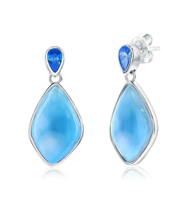 Caribbean Treasures Sterling Silver, Marquise Shaped Larimar & Blue Cz Earrings