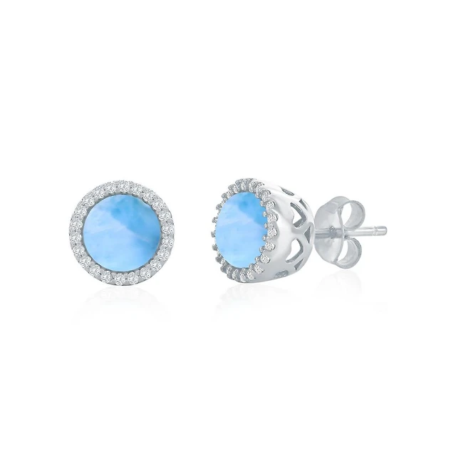 Caribbean Treasures Sterling Silver, Round Larimar, Cz Halo Studs