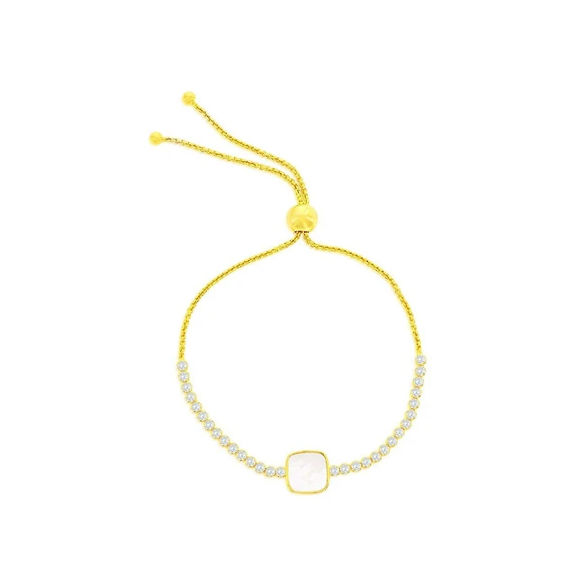 Caribbean Treasures Sterling Silver, Square Mop Center, Cz Adjustable Bolo Bracelet
