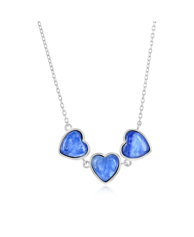 Caribbean Treasures Sterling Silver Triple Heart Necklace (Available Lapis, Malachite or Kyanite)