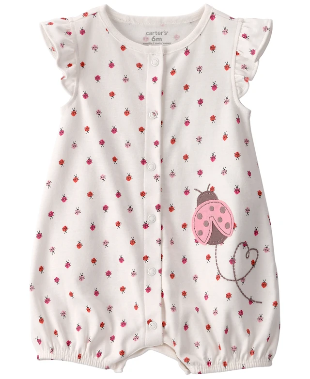 Carter's Baby Girls' Ladybug Print Flutter-Sleeve Romper
