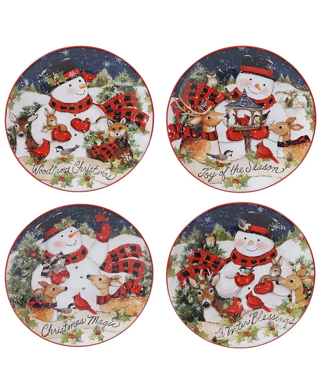 Certified International Magic of Christmas Snowman 4 Piece Dessert Plate