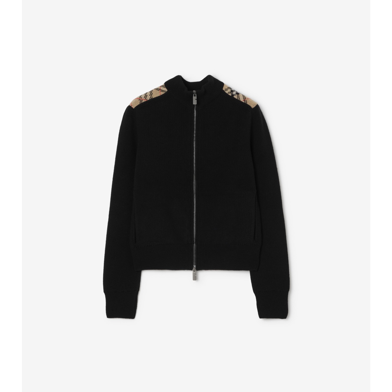 A funnel-neck cardigan knitted from wool cashmere. The regular-fit design is detailed with set-in Burberry Check epaulettes in our signature sand beige colourway. Two-way zip closure Side slip pockets Rib-knit trims