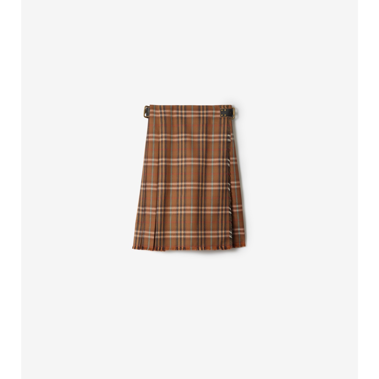 Check Wool Kilt in Ginger orange - Women | Burberry® Official