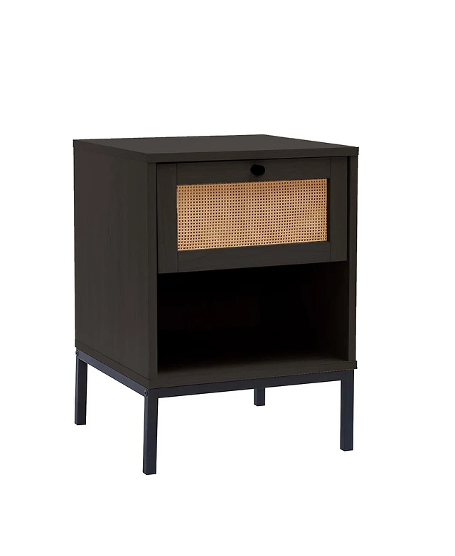 Clara Clark Wood Rattan 1-Drawer Bedside Table Night Stand