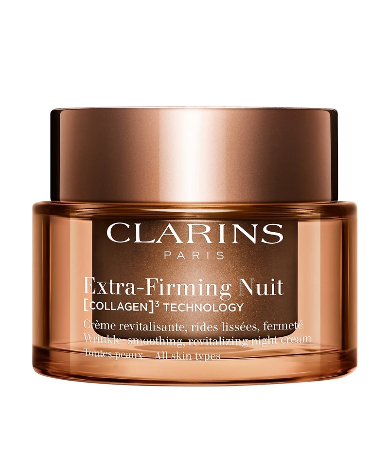 Support skin overnight with this Clarins Extra-Firming Night moisturizer, a firming and renewing night cream formulated with Collagen Polypeptide, Avocado Peptides, and Niacinamide. The formula helps skin feel smoother and more refreshed by morning while promoting a more even-looking complexion over time.