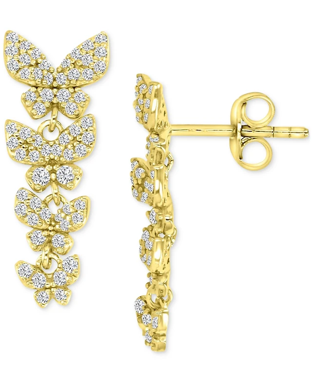 Cubic Zirconia Pave Butterfly Graduated Drop Earrings in 14k Gold-Plated Sterling Silver