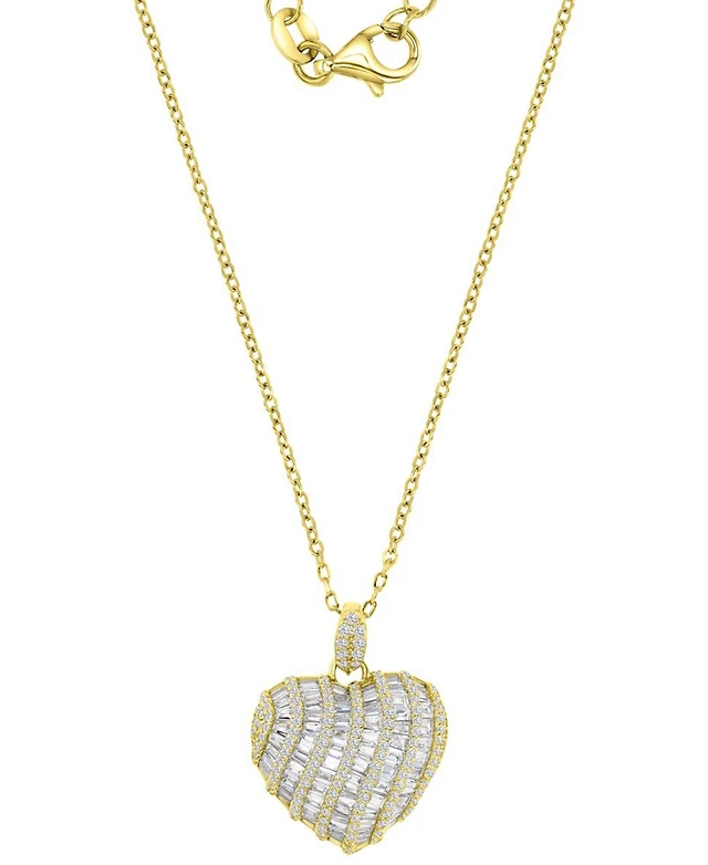Cubic Zirconia Round & Baguette Heart Pendant Necklace in 14k Gold-Plated Sterling Silver, 16" + 2" extender