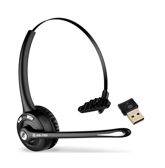 Delton 10X Bluetooth Computer Headset, Over-the-Head Single Ear Wireless Headset with Noise Canceling Mic, Usb Dongle for Computer/Laptop, Perfect for