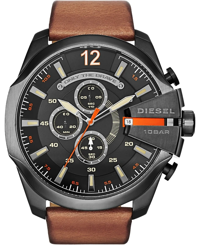 Diesel Men's Only The Brave Brown Leather Strap Watch 51x59mm