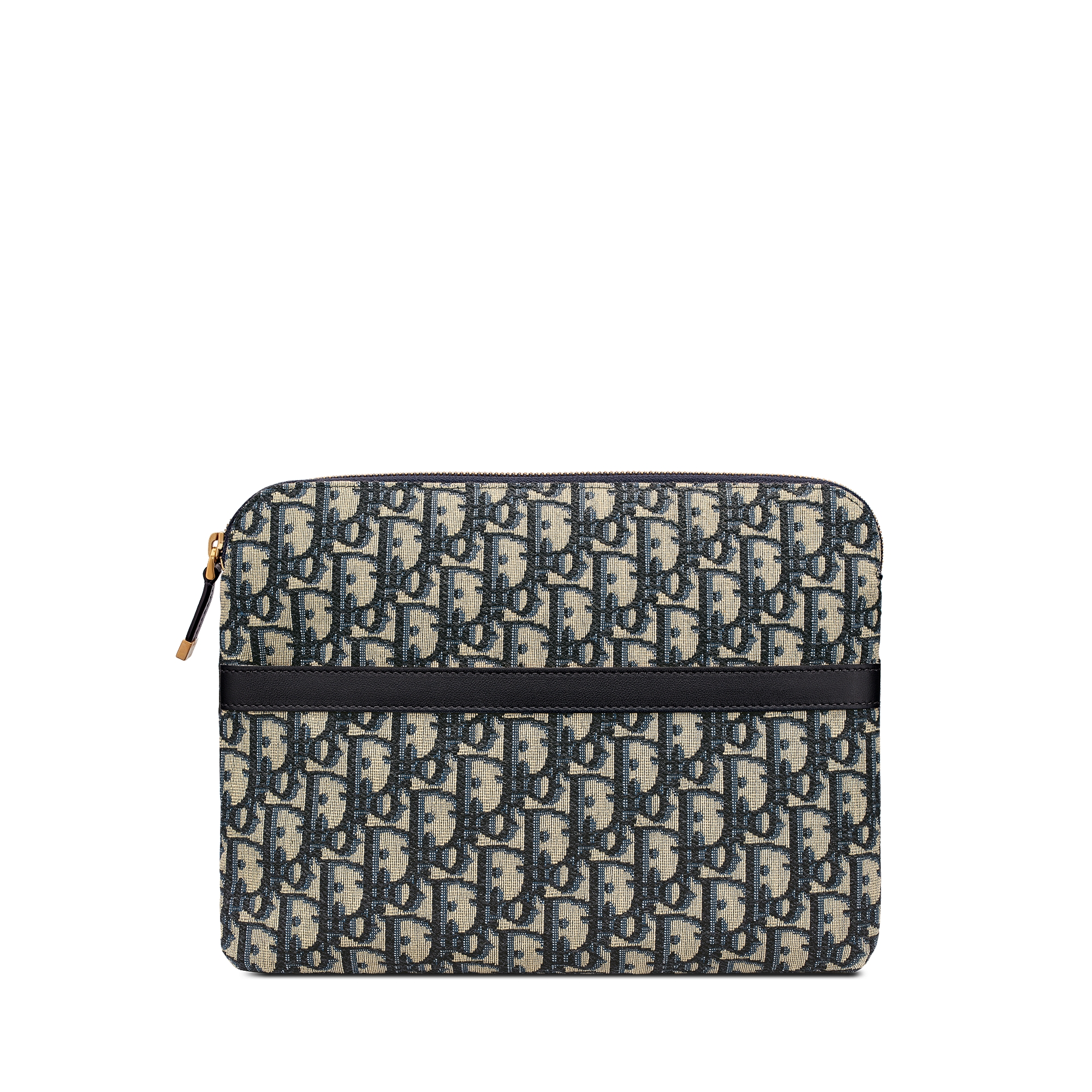 The travel kit is crafted in blue Dior Oblique jacquard, an emblematic House motif. The elegant set is composed of a large zipped pouch, a second smaller pouch, a passport cover, a card holder and a luggage tag. The travel kit is an ideal travel accessory and may easily be paired with other DiorTravel creations.