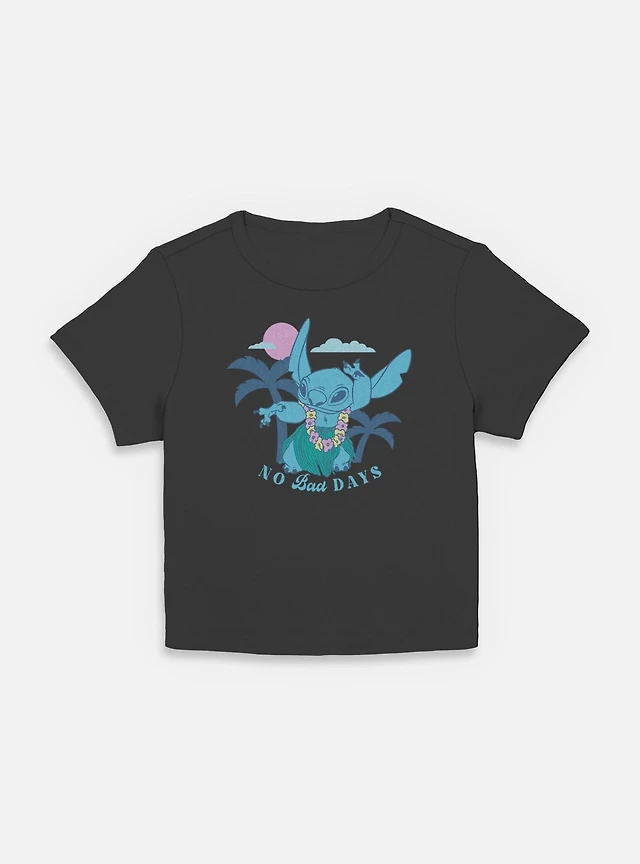 Disney Lilo & Stitch Tropical No Bad Days Womens Mineral Wash Crop T-Shirt