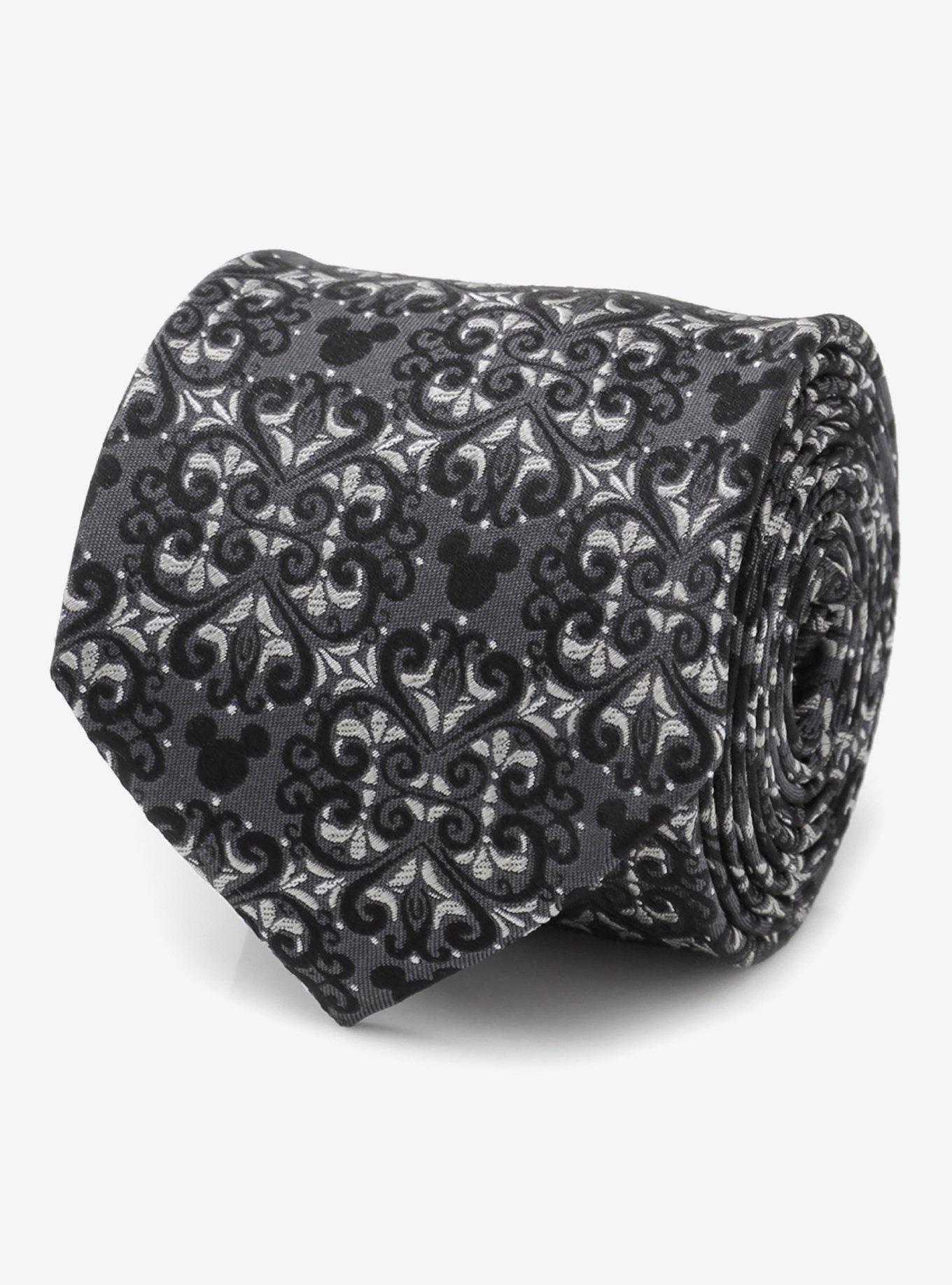 Elevate your neck tie game with this luxurious 100% silk tie, featuring an elegant slate gray and silver damask pattern woven around a series of black Mickey Mouse icons. An ideal gift for yourself or the mature Disney fan in your life. Officially licensed by Disney. Item cannot be shipped to P.O. Boxes