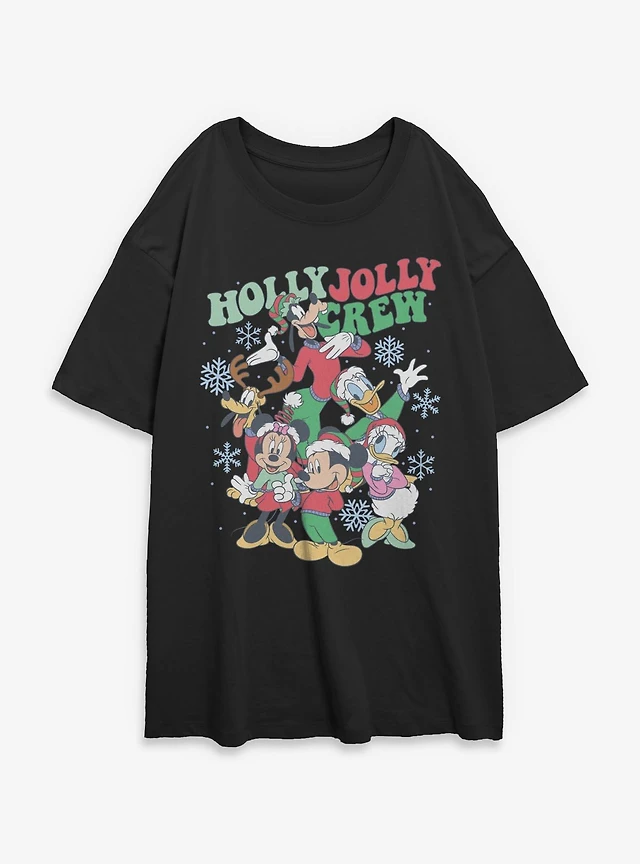 Disney Mickey Mouse & Friends Holly Jolly Crew Womens Oversized T-Shirt