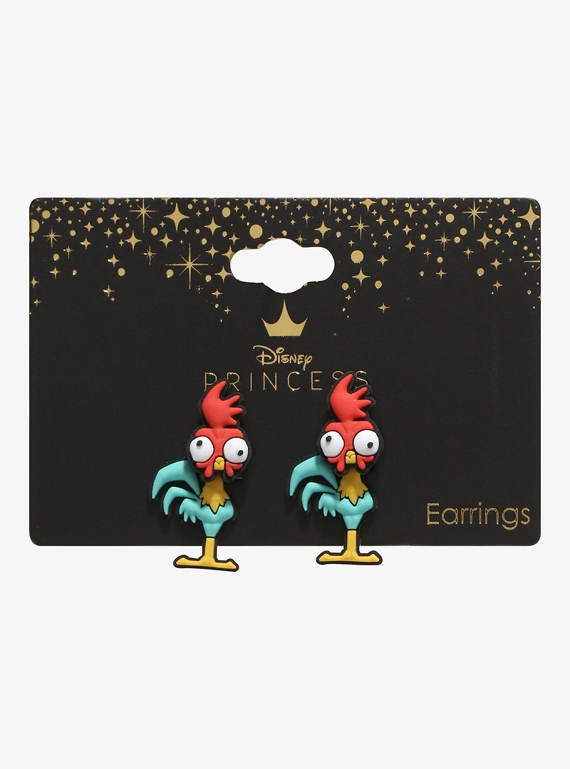 Head to Te Fiti with this silly sidekick by your side! These Moana stud earrings have a front/back design of Hei Hei.