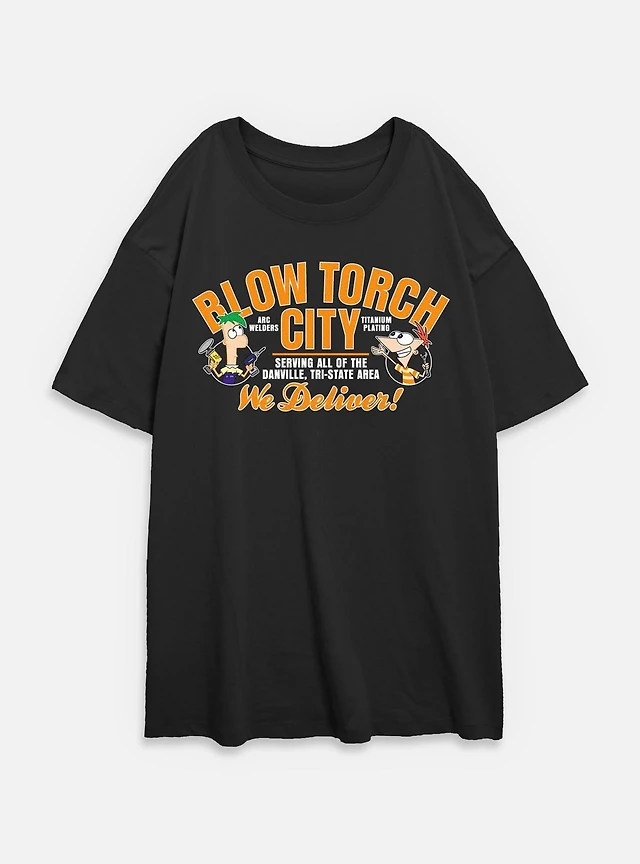 Disney Phineas and Ferb Blow Torch City Womens Oversized T-Shirt