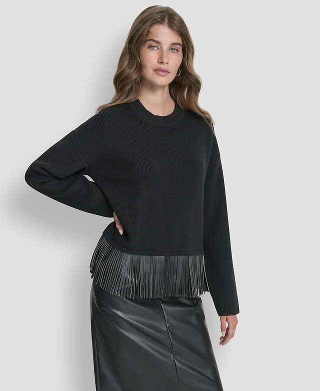 Dkny Women's Long Sleeve Fringe Hem Sweater