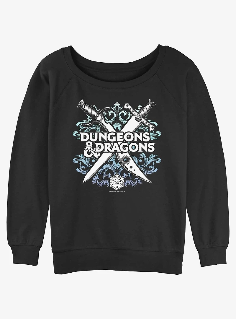 Dungeons & Dragons Decorative Crossed Weapons Logo Girls Slouchy Sweatshirt