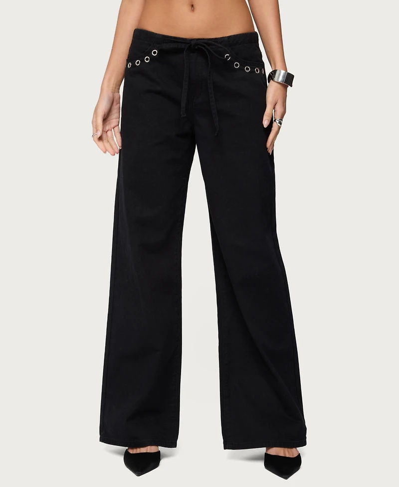 Edikted Womens Grommet Tie Waist Low Rise Jeans