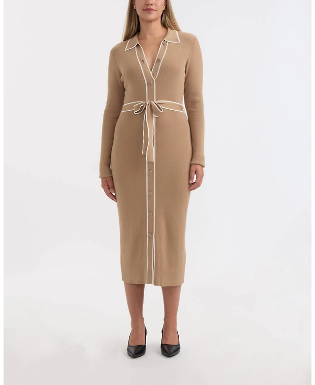 Ellen Tracy Women's Button Front Long Dress with Contrast Tipping