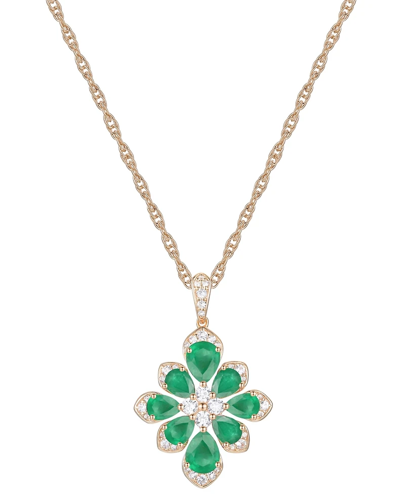 Emerald (1-3/4 ct. t.w.) & Diamond (1/4 Fancy 18" Pendant Necklace 14k Gold (Also Ruby Sapphire)