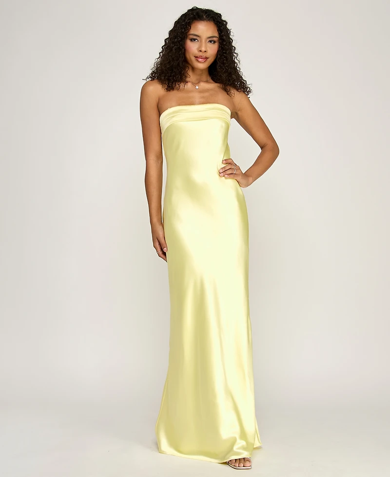 Emerald Sundae Juniors' Strapless Drape-Back Satin Gown