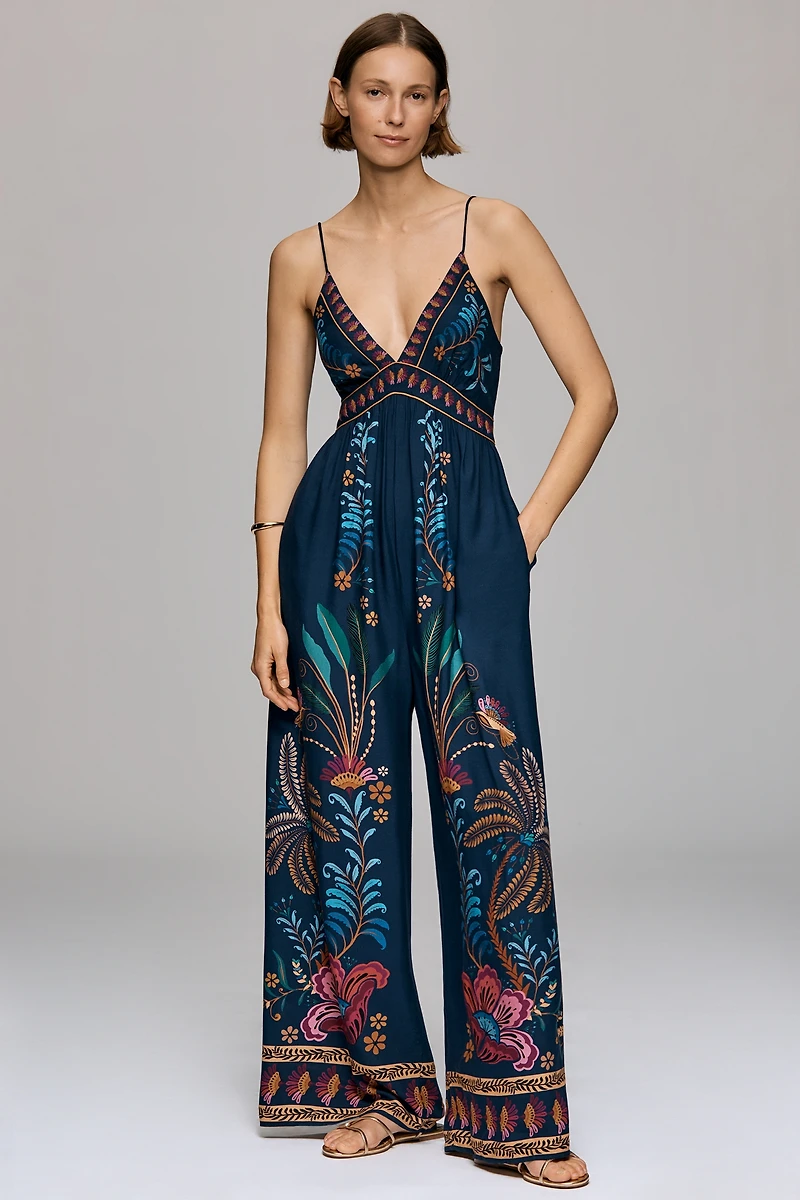 Farm Rio x Anthropologie V Neck Wide Leg Jumpsuit