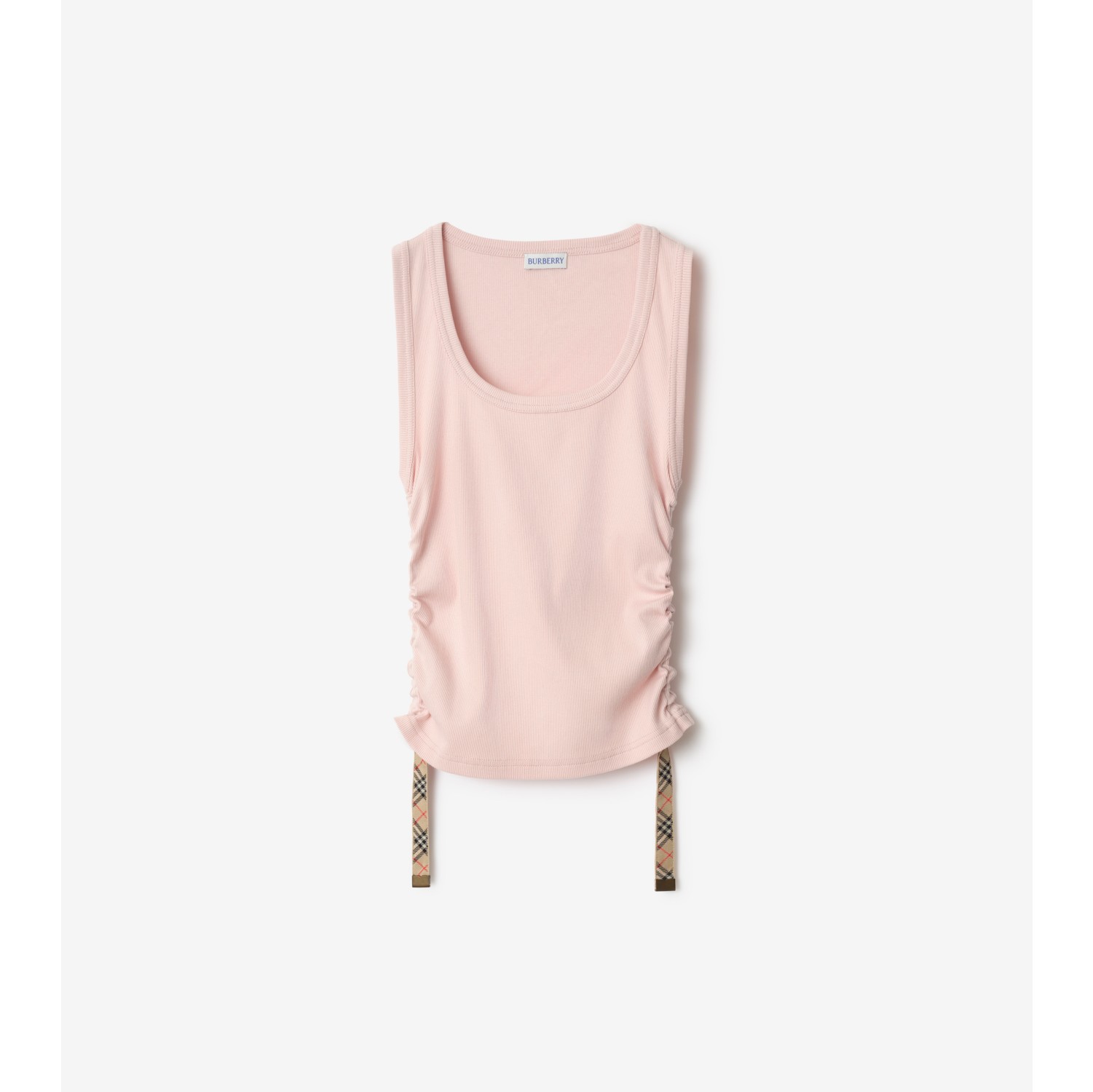A rib-knit tank top in a cotton blend jersey. Cut to a slim fit, the ruched sides can be adjusted with the Burberry Check side straps and B buckles.
