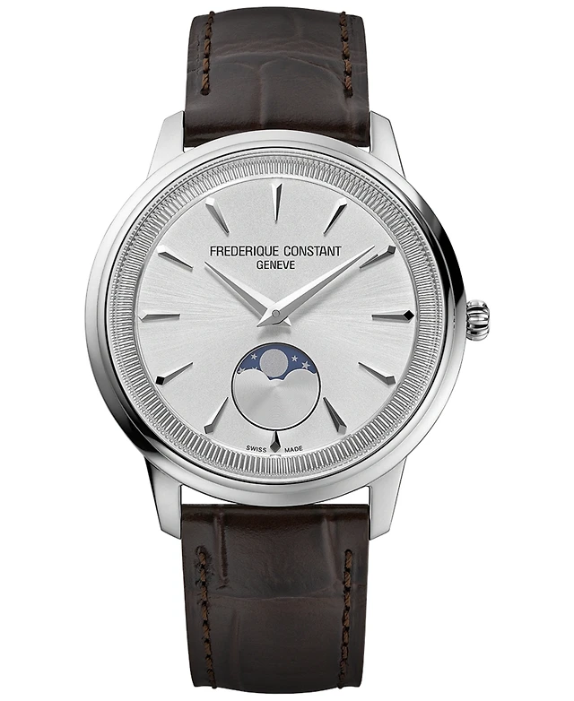 Frederique Constant Men's Swiss Moneta Moonphase Brown Leather Strap Watch 37mm