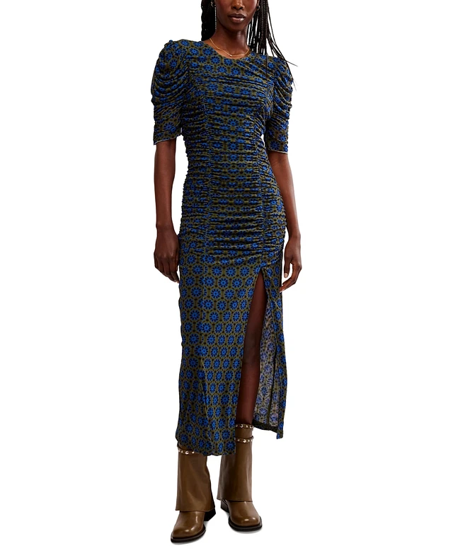 Bebe Women's Blouson Sleeve Ruched Midi Dress