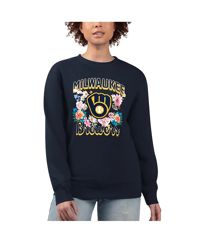 G-iii 4Her by Carl Banks Women's Navy Milwaukee Brewers Flowers Graphic Pullover Sweatshirt