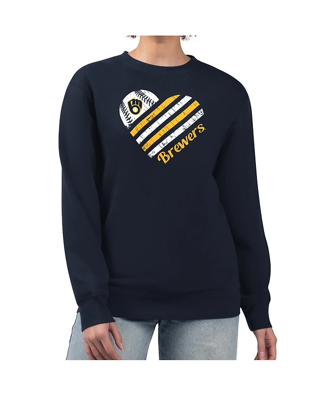 G-iii 4Her by Carl Banks Women's Navy Milwaukee Brewers Heart Logo Fleece Pullover Sweatshirt