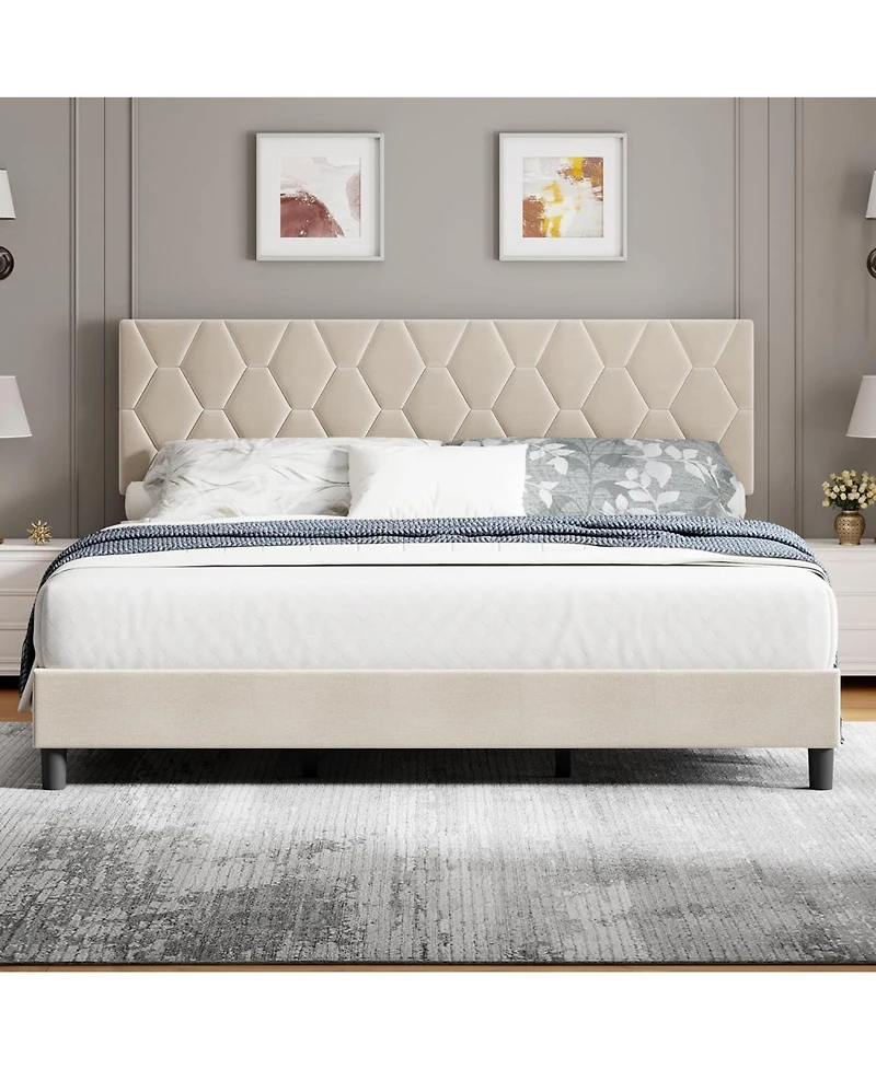 Stylish And Versatile: The upholstered headboard of this classic bed frame features linen upholstery and a diamond pattern for a unique appeal, plus thick, dense foam padding for a cozy touch.durability and Stability: Built with thick wood and thickened metal for long-lasting performance and reliable support.adjustable Headboard: Adjustable headboard fits 8-14 in mattresses and adapts to a wide range of mattresses including memory foam, latex or hybrid mattresses.warp-free Design: The grey twin upholstered bed frame's recessed design holds the mattress securely in place and prevents sliding. The seamless slat locking system and Eva sound-quieting decals deliver a noise-free experience.easy To Assemble: Sticky Wooden Slats are easier and faster to install, and the entire upholstered bed frame can be assembled in about 30 minutes.
