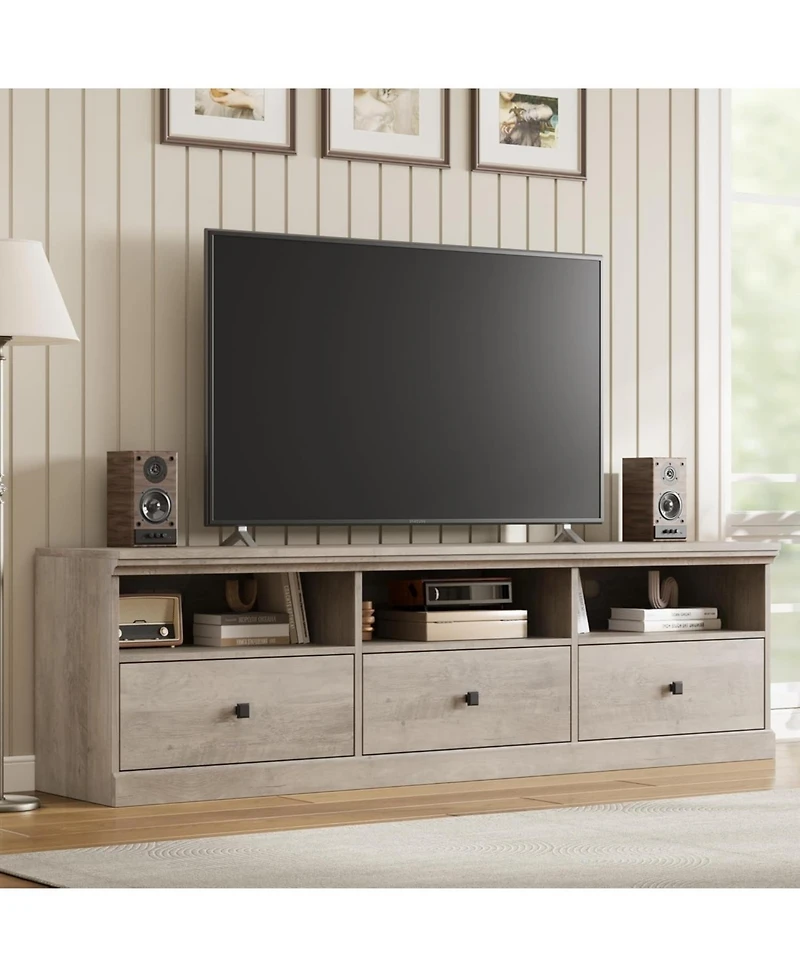 Tv Stand for 65/70/75" Tv, Entertainment Center with Storage Drawer, Mid-Century Modern Tv Console with Open Shelves