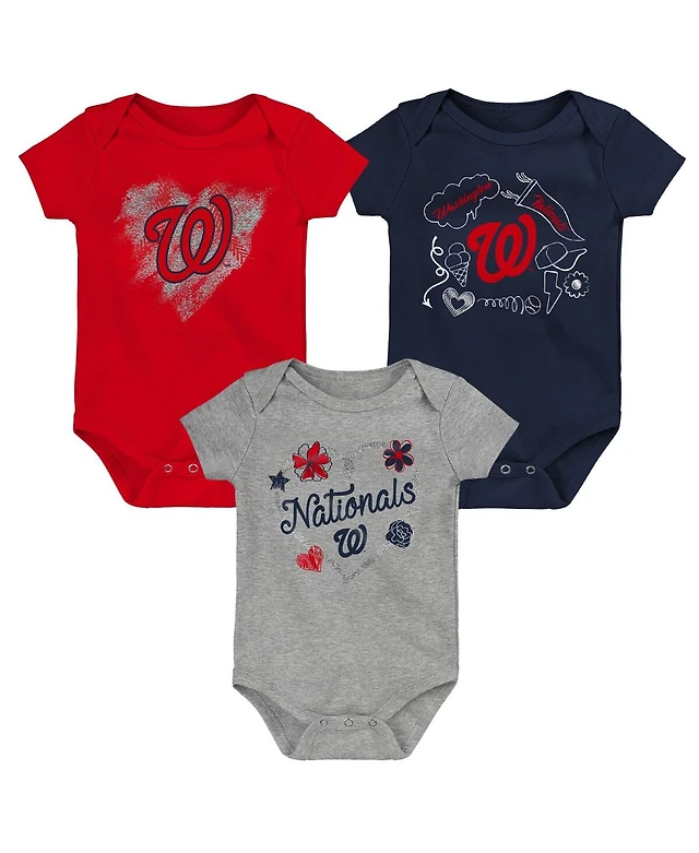 Girls Newborn and Infant Red, Navy, Heathered Gray Washington Nationals 3-Pack Batter Up Bodysuit Set