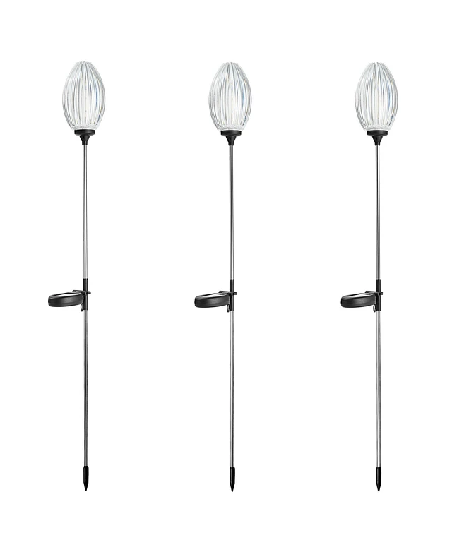 Glitzhome 36" H Set of 3 Solar Powered Stake Oval Flower Light with Stainless Steel Pole