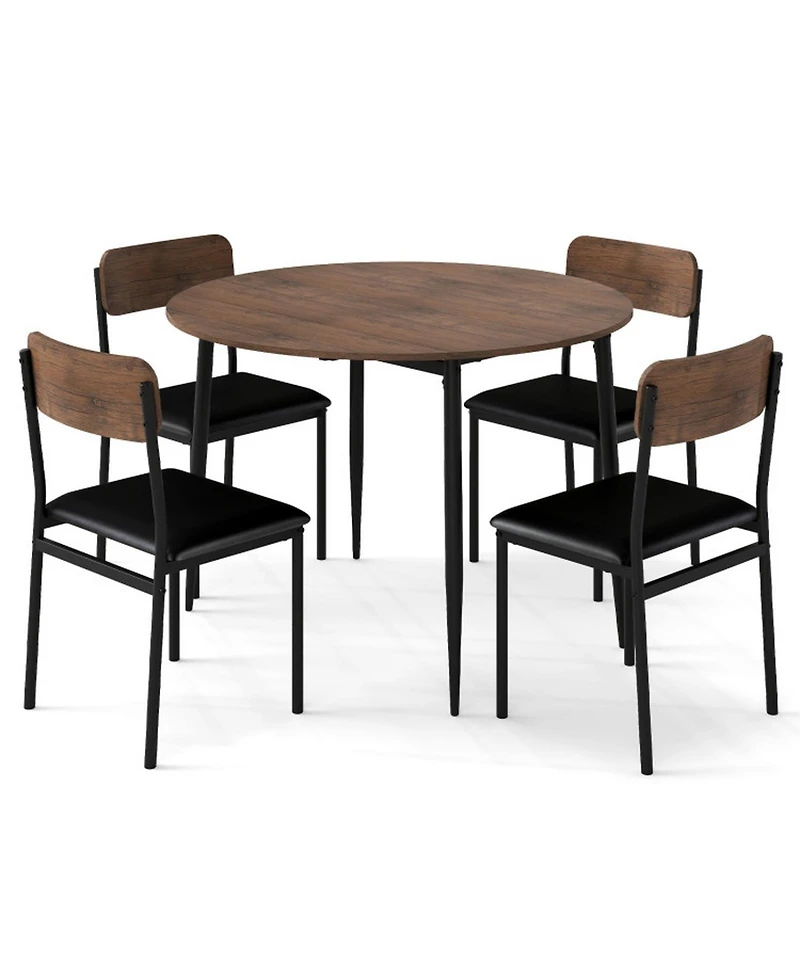 Gouun 5-Piece Round Drop Leaf Dining Table Set with 4 Upholstered Chairs
