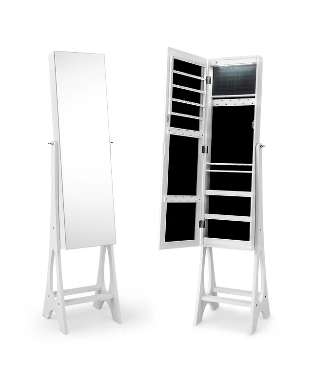 Lockable Freestanding Jewelry Organizer with Full-Length Frameless Mirror