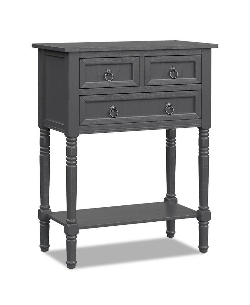 Streamline your entryway or hallway with this compact console table crafted from premium Mdf boards, rubber wood drawer slides, and acacia wood legs for lasting durability. Two small drawers and one large drawer keep keys, mail, and accessories tucked away, while the open bottom shelf provides easy-access storage for shoes or baskets. Pre-installed upper sections and tool-free assembly let you set it up in minutes, making it ideal for renters and small-space dwellers.