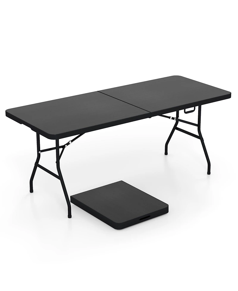 Whether you are hosting a yard sale or setting up a buffet, this 71 in portable folding table folds in half and locks with a security latch for one-person transport via the carrying handle. A honeycomb panel core keeps weight at 26.5 lbs while supporting 330 lbs across the waterproof Hdpe top. The U-shaped steel frame provides wide-stance stability, and rounded corners eliminate sharp edges. Folded, it shrinks to 36 x 29 x 3 in for compact storage.