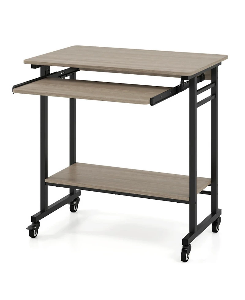 Gouun Rolling Computer Table with Pull-out Keyboard Tray and Storage Hooks