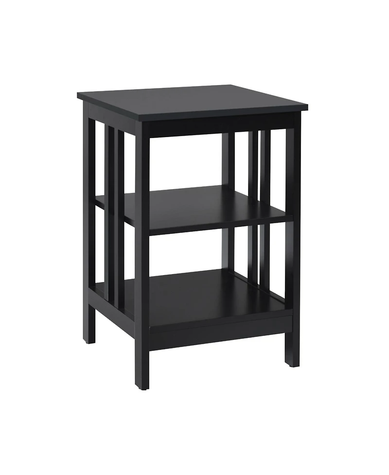 Outfit both sides of the bed with matching three-tier nightstands that combine clean lines with practical open storage. Reinforced bars along each shelf edge prevent items from tipping over during the night, and multiple floor pads keep the units stable on any surface. The painted Mdf body resists moisture and everyday scratches, so a quick wipe restores the matte black finish after spills. Each table measures 16 x 16 x 24 in, fitting compactly beside king, queen, or twin beds.