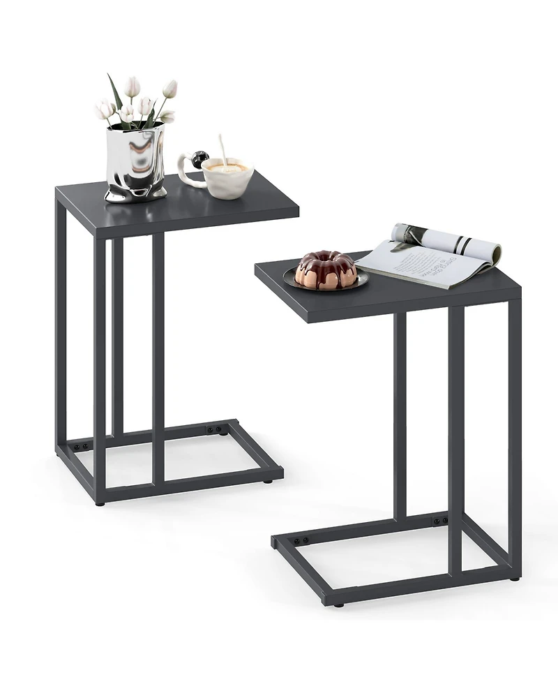 Gymax C Shaped End Table Set of 2 with Metal Frame Sofa Table for Small Space Modern
