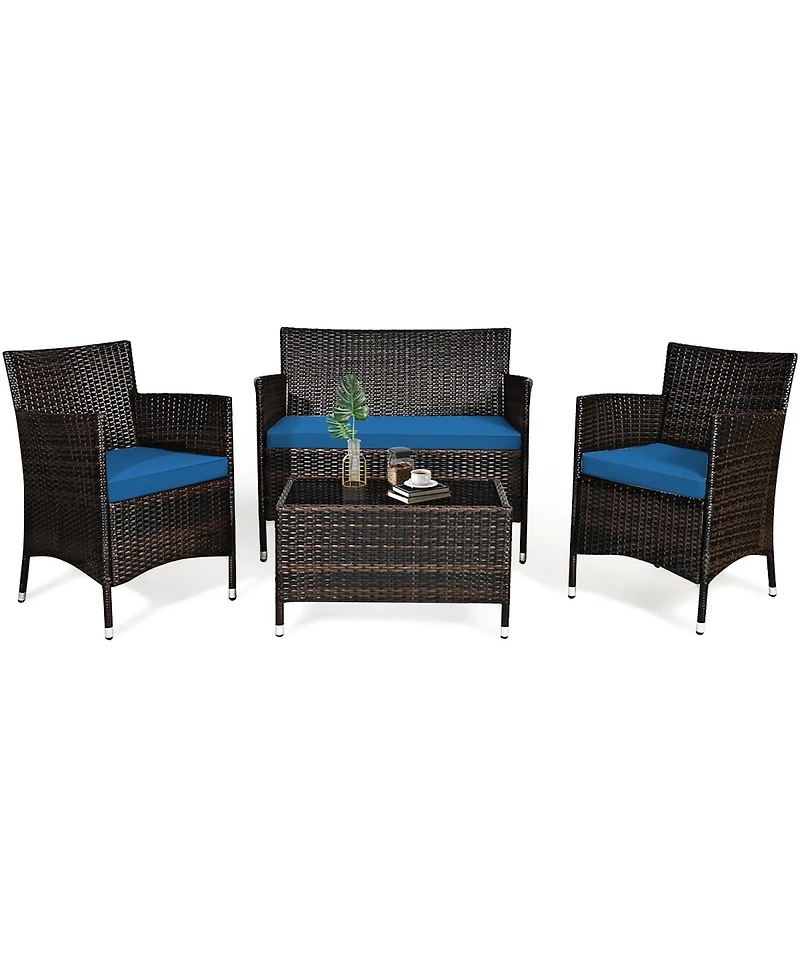 Gymax Set of Outdoor Patio Rattan Conversation Furniture Set w/ Cushion Table