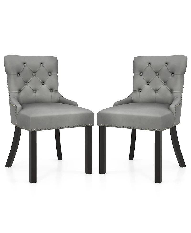 Enjoy comfort and style with our upholstered fabric dining chairs!Featuring wing back designs and stylish nailhead trims, the farmhouse fabric chair will add a touch of sophistication to any room. The soft padded backrest is accentuated by deep button tufting and low-set arms, ensuring not only a visually appealing look but also providing exceptional comfort. Besides, the comfortable padded seat with sponge filling will bring optimal comfort. Designed to support up to 360 lbs, the solid rubber wood legs ensure stability and longevity, making the upholstered dining chairs ideal for everyday use. Whether you use them for intimate dinners or as decorative accent pieces, these chairs are a perfect blend of style and functionality.Features:Ergonomic wingback will provide unmatched support for your back and waistSoft and breathable dutch fabric offers smooth touchSupportive sponge filling of the seat will greatly reduce your fatigue