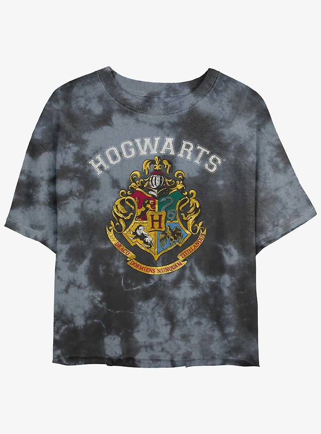 Harry Potter Hogwarts Logo Womens Tie-Dye Crop T-Shirt