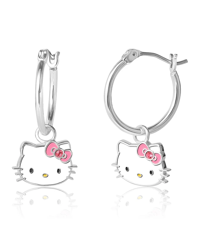 Hello Kitty Sanrio Pave Charm Hoop Earrings