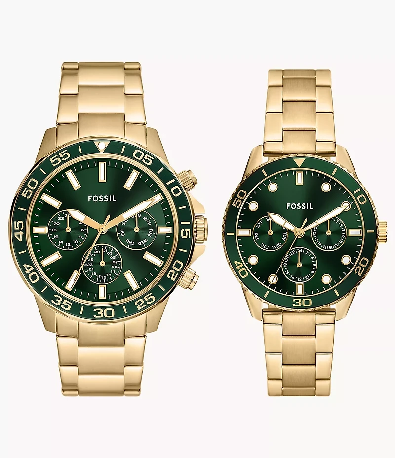 His and Hers Multifunction Gold-Tone Stainless Steel Watch Set in Bloomington, MN