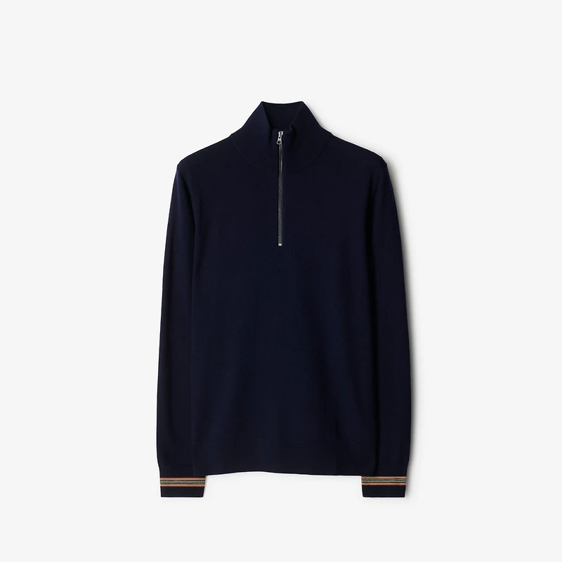 A half-zip sweater in lightweight wool, featuring our Icon stripe house code at the cuffs. Zip closure Rib-knit trims