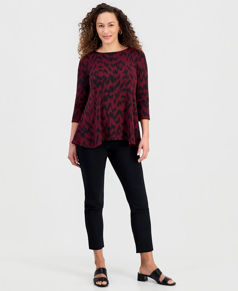 Jm Collection Petite Printed 3/4-Sleeve Long Top, Created for Macy's